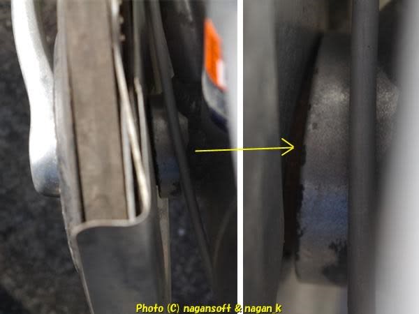 これってぐらついていいのん?いや、ダメでしょ。本当はホイールにきっちり張り付いてないとダメでしょ。
