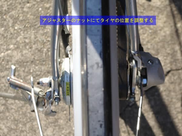 これなら後輪ハブ固定ナットを緩めて、アジャスターを締めたり緩めたりしてリヤタイヤの向き調整可能です。