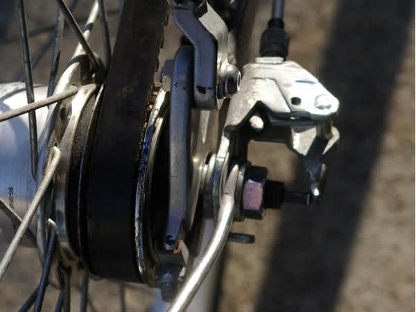 自転車の後輪を浮かせて手で勢いよく後輪を回してみると、このタイミングで抵抗があり、もちろんのようにすぐに回転が止まります。