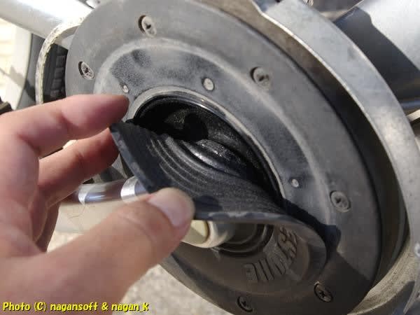 ペダル側はベルトカバーのバックプレートが左右に遊ぶことでベルトプーリーにベルトカバーが接触して音か出るのです。