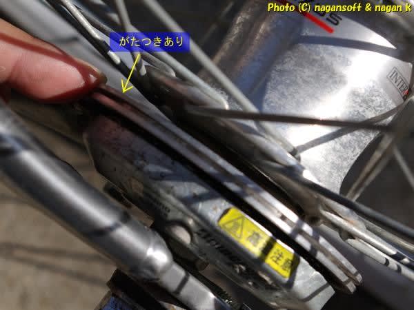 自転車から降りて手押しでバックさせてみます。「バキバキ」とリヤから盛大に大きい音がしますよ。