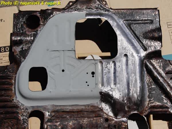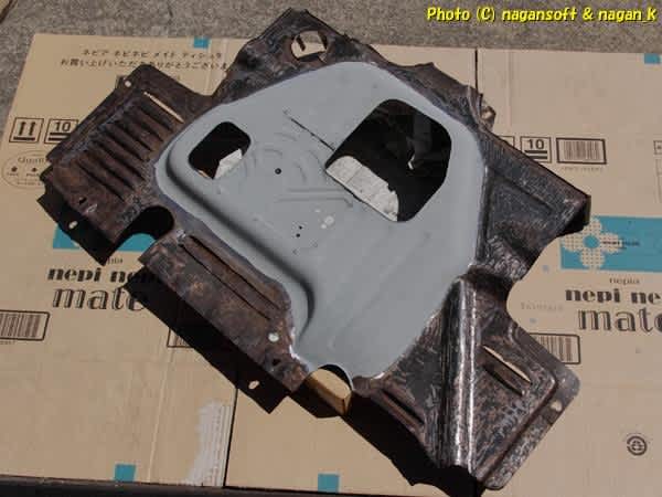 これで、エンジンアンダーカバーの鍋底両面を板金と錆取り終了です。