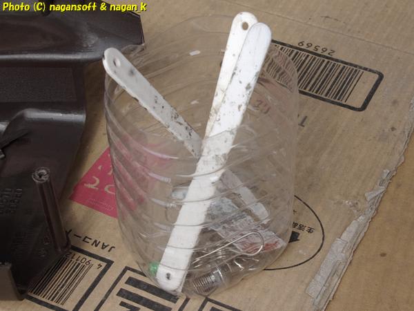 仕方がないので道具立て(パテヘラを入れてます)にしているペットボトルから少し切り出しました。