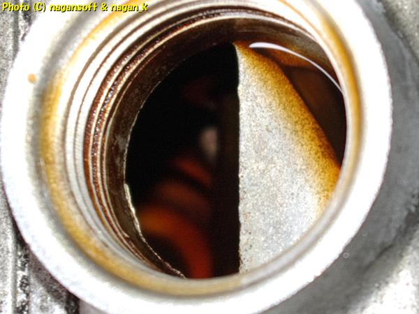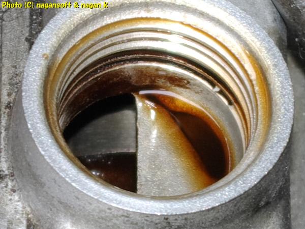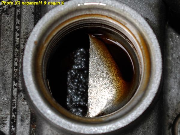 オイル越しに底が見えるのです。黒く汚れたオイルなのに底が見えているということは、真っ黒だったものが金属色になっているのではと考えます。