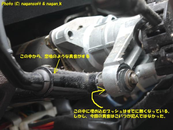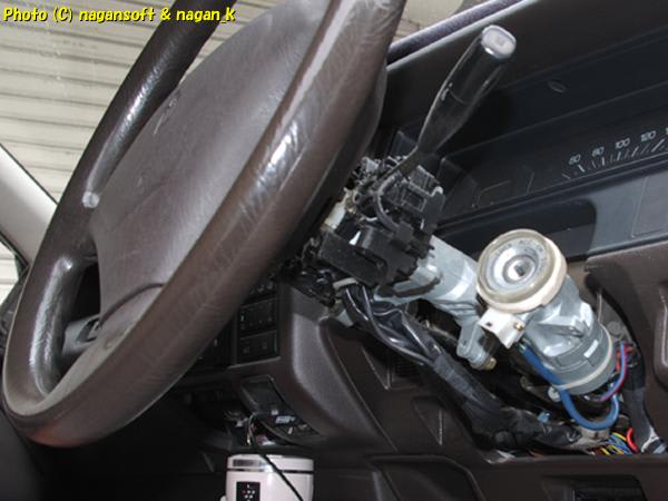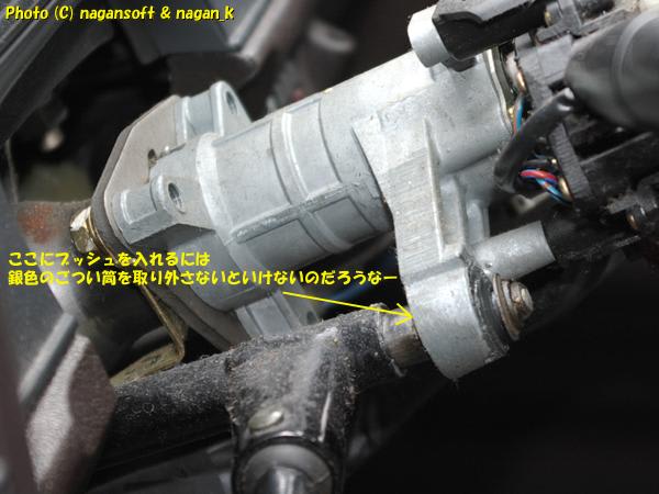 やっぱりステアリング根本の大きい銀色の筒(ステアリングコラムブラケット)を取り外さないといけないのかな?ステアリング外してスイッチ周り外してって面倒だなー。と、近い将来にやらなければにならない作業を妄想しておきました。