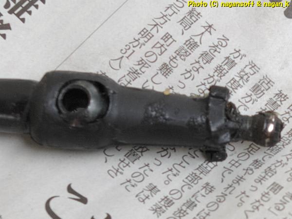 根本にゴムブッシュのようなものが差し込まれているのですが、それがちびて変形してダメダメです。