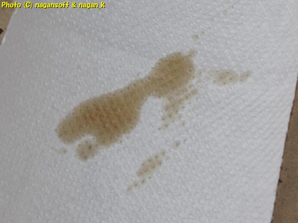 オイルの汚れ具合は、キッチンペーパーにゲージをなすくってこんな感じです。