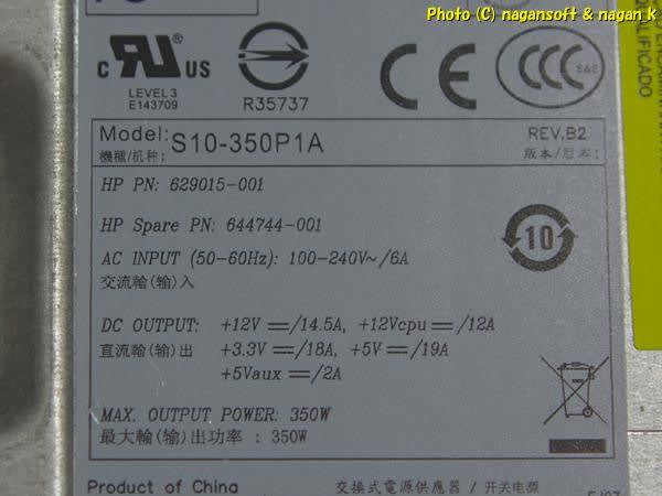 HP Proliant ML110 G7 って機種の電源です。サーバ機なのに電源350Wがついていたのね。