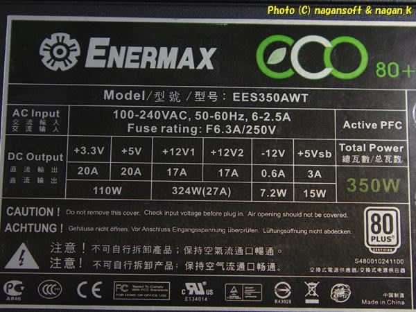 今回に入れ替える電源は、自作パソコンではそこそこメジャーなEnermaxのやつで350Wです。