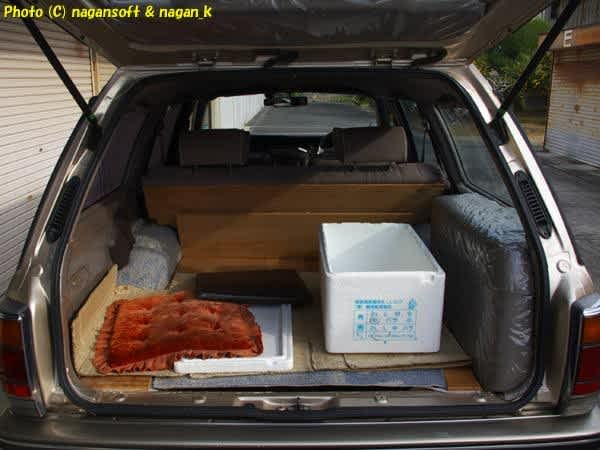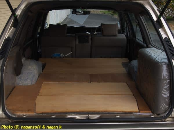 これをいつもの荷台仕様へ、2列目シートを畳んでコンパネ板ベットにします。