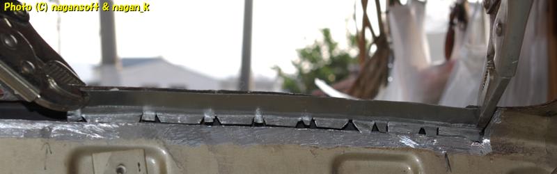 昨日にリヤガラスはめ合い部の室内側鉄板を切り取ってます。