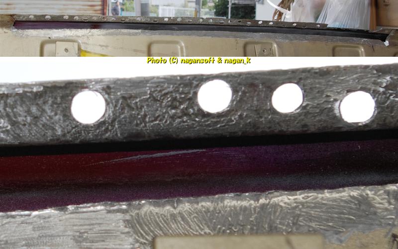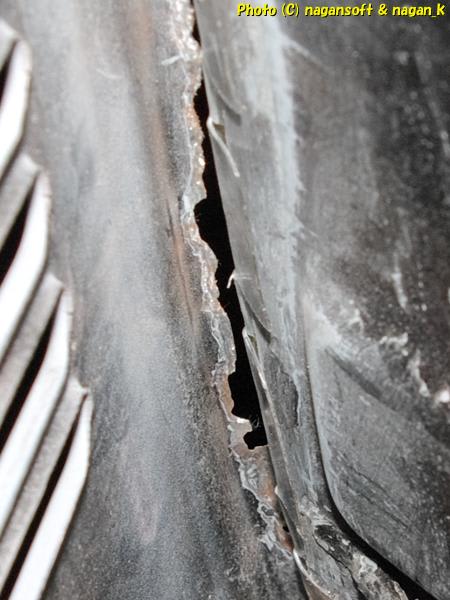 すると、車体外装側の鉄板が強烈な錆甲冑でした。