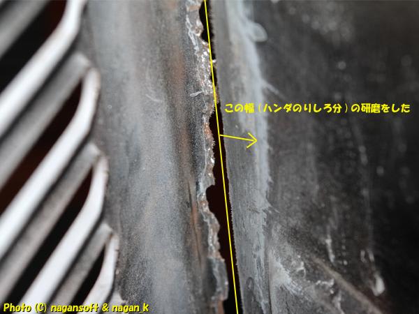 さらに、昨日に切り出した部分にパッチ鉄板を貼りつけるために、ハンダ糊代となる個所を研磨して鉄肌を露出します。