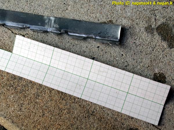 テンプレートって工作用方眼紙です。こいつを折り曲げてパッチ鉄板のサイズを探っていたのです。