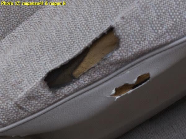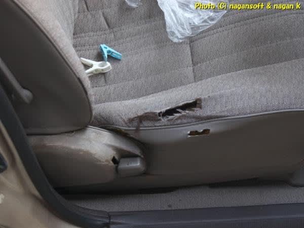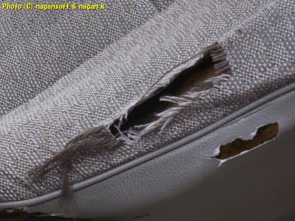 次は運転席シート破けです。