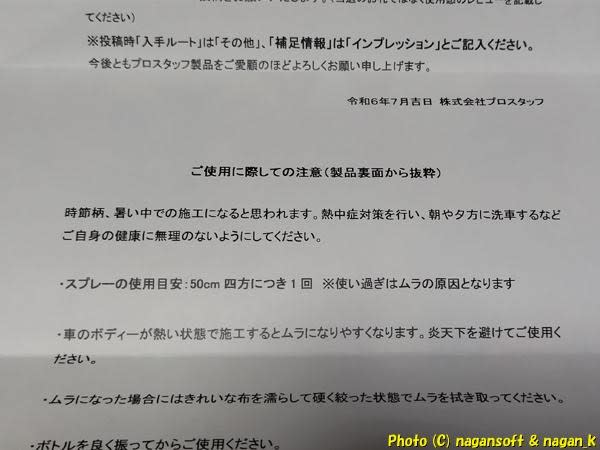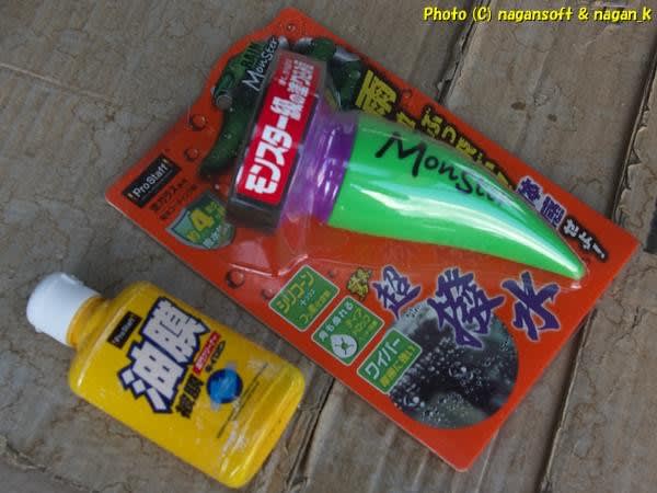 「キイロビン100」と「レインモンスタースプラッシュ」でこうなりました。横から撮影したのは油膜有無がわかりやすいかなと思って….