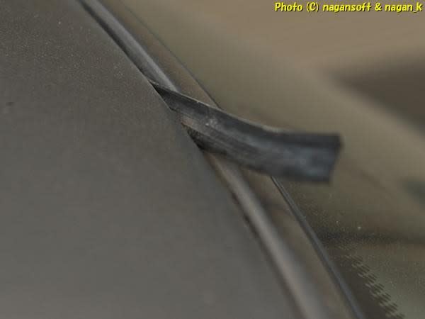 フロントガラスの上から干し昆布が飛び出してます。