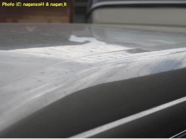 塗装がムラムラになっているボンネットの写真です。(フロントガラス側から車体先端へ向かって撮影しています)