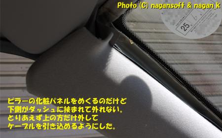 そんなのは嫌なので、とりあえずピラー化粧パネルの上だけ外して、隙間からケーブルを押し込むことを考える。