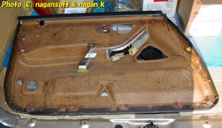 と、ここで前スピーカー取付けの予備調査はは終了。ドア内貼りを戻して今日の作業を終了しました。