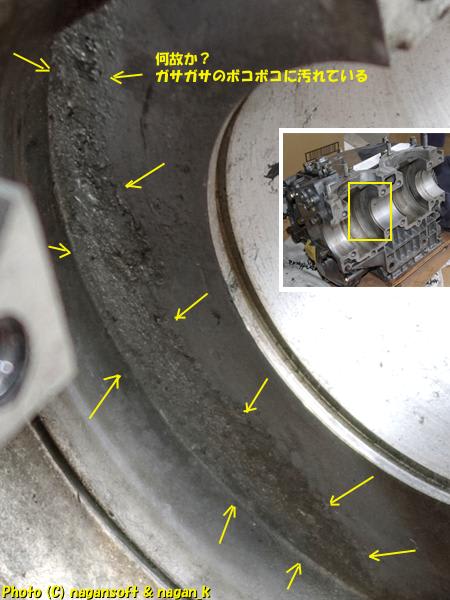 2番ピストン側ですが、クランクベアリング側面が触れる箇所が、何故かボコボコで汚れているのです。