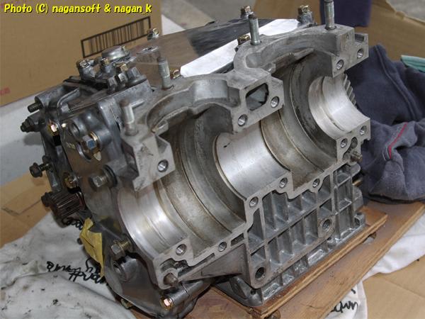 エンジンブロックが、クランクケースとミッションケースが合体した構造です。