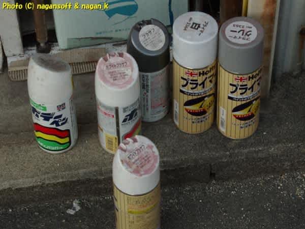 はい、下手くそ缶スプレー塗装定番の「プッ、プッ」噴射です。