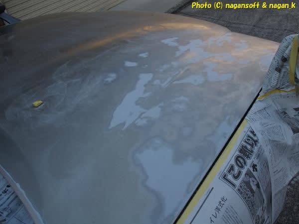 すぐに上塗りするのならいいんだけど、まだルーフの作業で日にちがかかりますし、週末は雨の天気予報も出てますし…