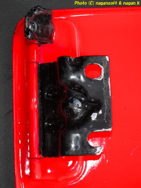 これで、燃料給油口カバーヒンジ部分のクリヤートップコート完成のつもりです。