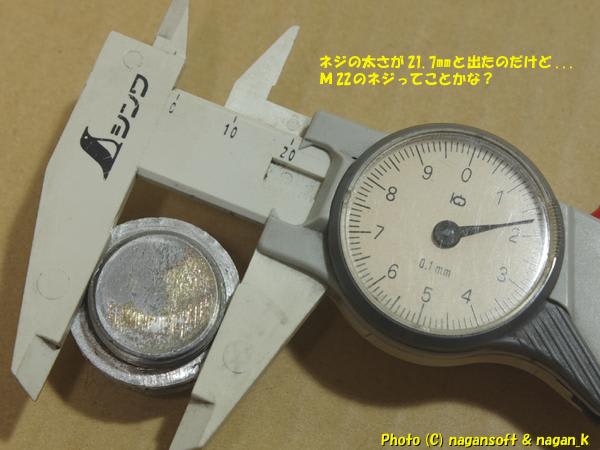 ノギスで測ったらネジの太さが21.7mmと出たのでM22かな?となった次第。ちなみにピッチ1.5は、M22の細目ボルトということか?。