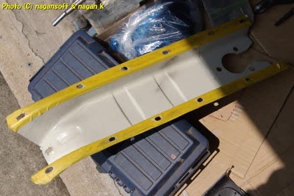 錆だらけガサガサ肌のセンタートンネルカバーをそのまま車体床に接触させたくないので、マスキングテープ貼ってちょっとだけ抵抗してみました。