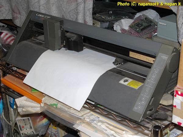 5年ぐらい前に100円ショップダイソーで購入したカッティングシートを食わしてなんとか切り出し成功です。