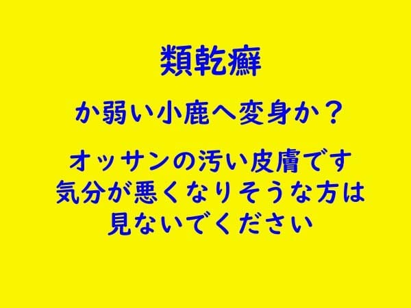尋常性乾癬ではありません。乾癬によく似た、発疹がカサカサになってうろこ状に皮膚が剥がれていくという謎の病気一般相称で「類乾癬」です。つまり「乾癬のような症状のやつ」ってことです。