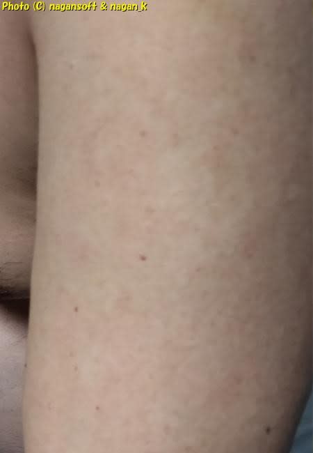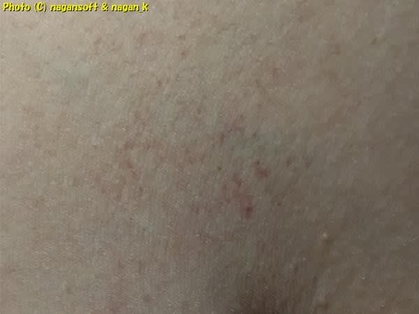 大量の小さい散発発疹は、昨日の今日に軟膏を塗ったところで消えるわけありません。