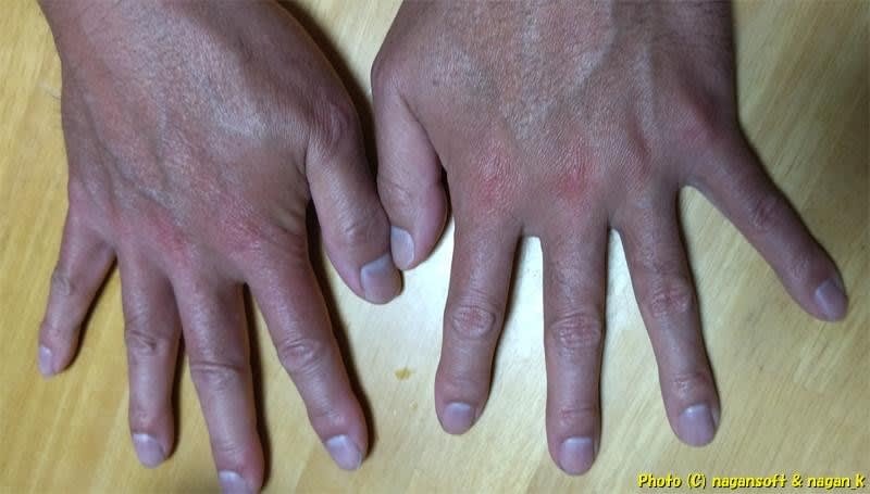 わかるかな?関節部分の外側のみ赤くなっているでしょ。