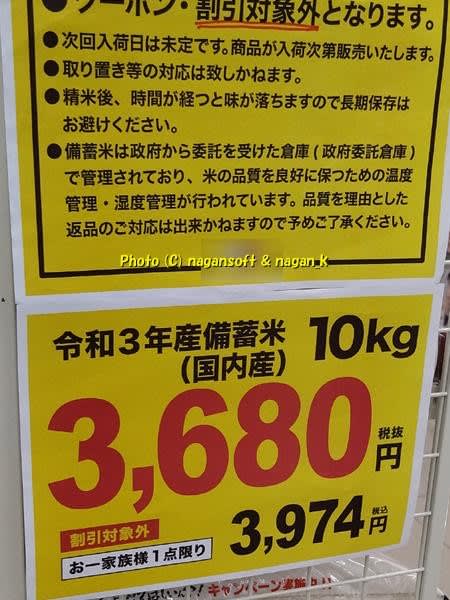 ブランド米の半額処分、ないしは、カリフォルニア米の半額処分ってのを買うことになるだろうと想定していたのよ。