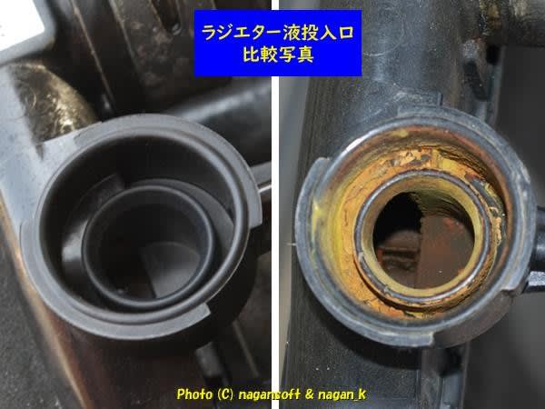 ラジエター液投入口の比較写真ですよ。もちろん問題無しです。