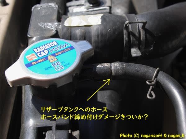 リザーブタンクへ繋がる水路ホースのホースバンド締め付けダメージがきつそうです。