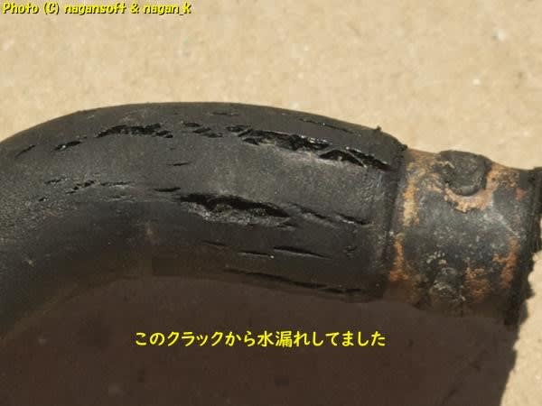 ホースが裂けるようにクラック発生です。ここから水が滲むように出ていたのです。