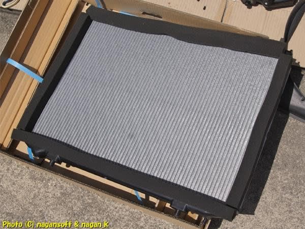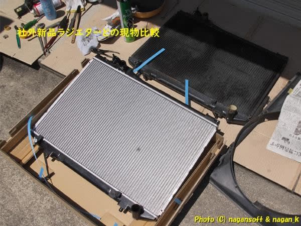 取り外したラジエターと、社外新品ラジエターの形状に相違無いか確認します。
