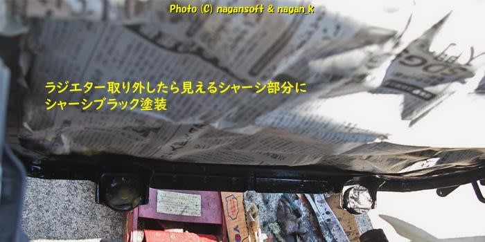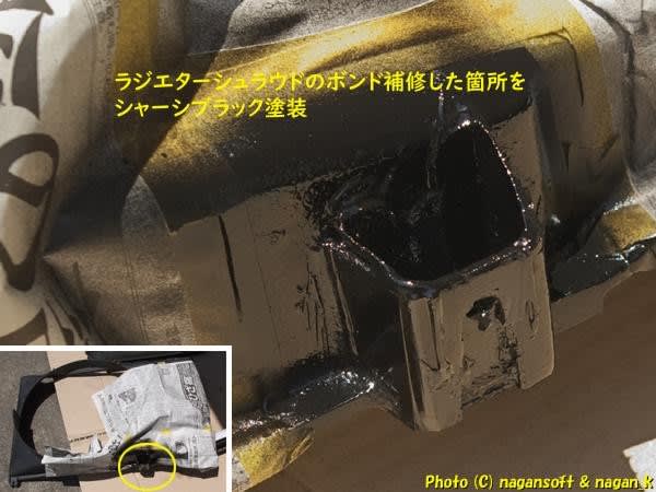 ラジエターシュラウドのボンド補修していた箇所もシャーシブラック塗装です。