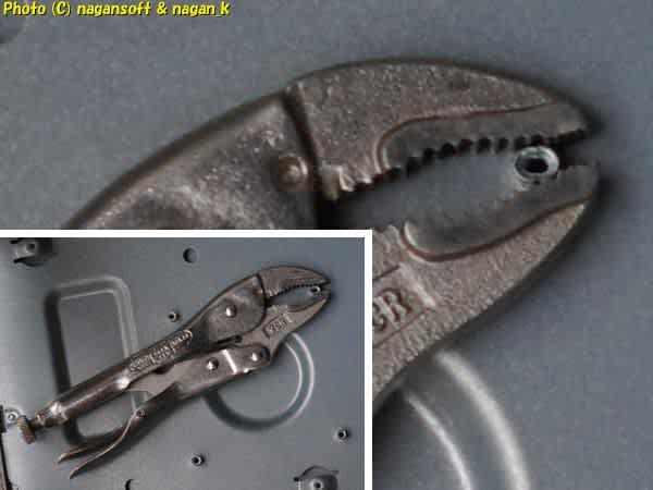 もしかして捻じ込みで固定されているのでは?と思って、バイスプライヤーで回らないかとやってみたら、ネジ受けが潰れた。
