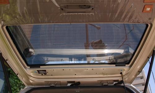 次に、リアゲートガラスの内側にあるウェザーストリップゴムというのかな?ガラスとドアゲートの隙間のゴムを剥がします。