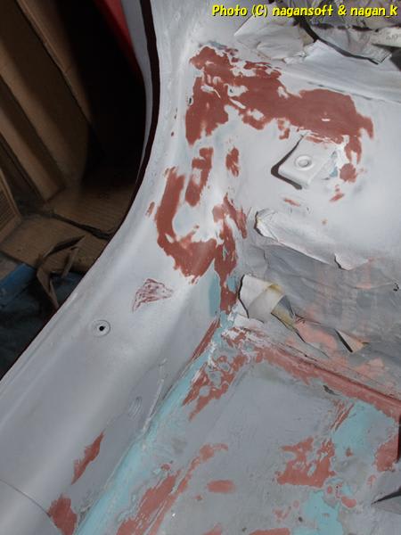 (右サイドシル上部分の完成写真はありません。後右席床と比べると大したことなかったので撮影するのを忘れてます。)