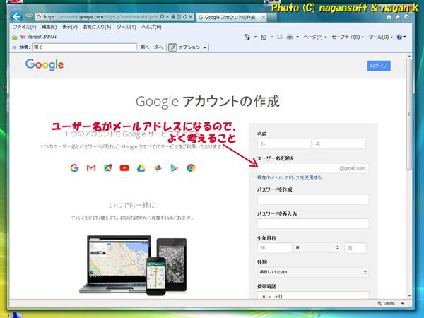 私は、パソコンからgoogle登録したのちに、そのユーザーIDをスマホに登録して使えるようにしました。つまり、パソコンからの登録なので、スマホからgoogleアカウント取得の参考にならないかもしれません。その点を承知の上で、こんなことでもできるのねー。という参考情報程度に読んでください。