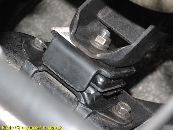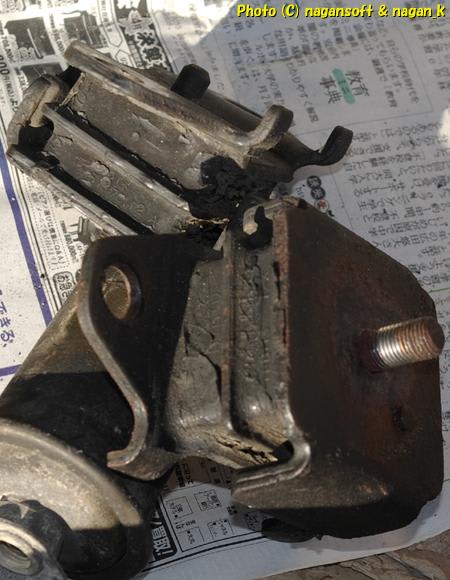 交換したエンジンマウントのゴム横面がわかる写真を撮影したので、20年たったエンジンマウントがこんなのだったという参考にしてください。