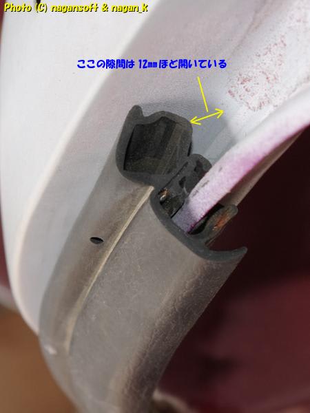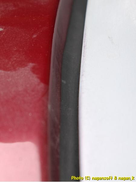 ドリップレールの上辺部分は、鉄板一枚が単にカールしているだけなので強度は期待できません。強度のない部分にゴムをはめてエンジンルームフードの荷重を受け止めようなんて間違っていますよね。