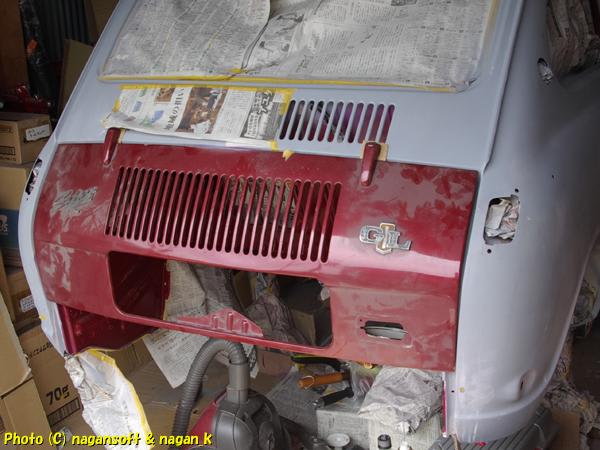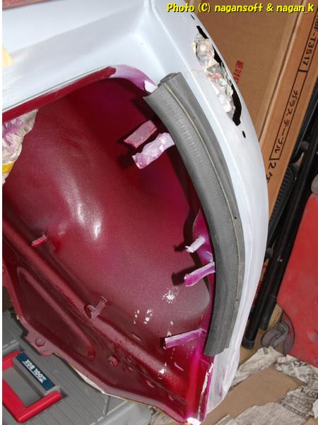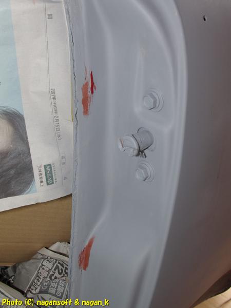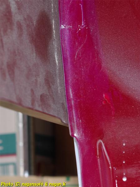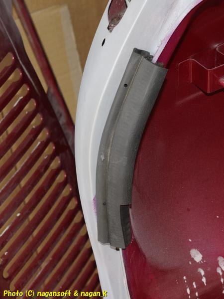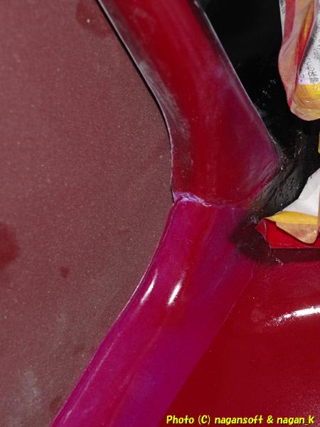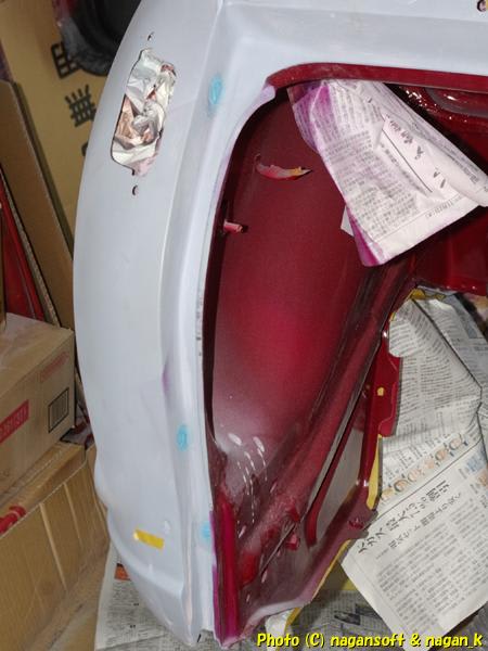 赤色塗装なのでずっと昔に鈑金屋が全塗装したときの仕事になります。