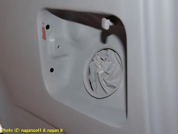 そうなると、オリジナルに似た形状のあたり止めゴムのようなものを自作する気分は失せましたので、そのゴムを取付する穴も邪魔者となります。