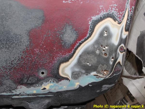 プスプスとサビ穴を開けながら、こりゃー内部から錆びが来ているなーと実感です。